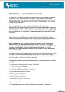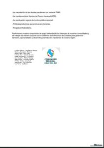 Según el documento difundido, representantes de distintas localidades expresaron su inquietud ante la falta de recursos, lo que impacta directamente en la capacidad operativa de la comunidad regional, un organismo clave para la articulación de políticas públicas en el norte cordobés.